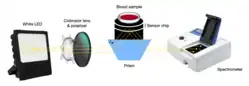 - Hemagglutination blood typing detection:[24] This method consists of measuring the blood’s reflectance spectrum alone (non-agglutination), and that of blood mixed with antibody reagents (agglutination) using a waveguide-mode sensor. As a result, some differences in reflectance between the samples are observed. Once antibodies are added, blood types and Rh(D) typing can be determined using the waveguide-mode sensor. This technique is able to detect weak agglutinations that are almost impossible to detect with the human eye.