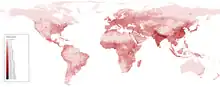 ![]() Choropleth map showing Population density (people per square kilometer) estimates by 30 arc-second grid in 2020 | |
