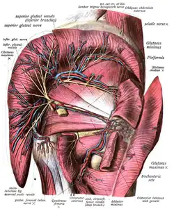 At their origin, the inferior gluteal veins form anastomoses with the medial femoral circumflex vein and the first perforating veins. They provide a means of collateral circulation between the femoral vein, and lnternal iliac vein.[1]