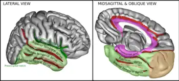 - ↑ Purves D, Augustine GJ, Fitzpatrick D, et al., eds. (2001). "Lesions in the Temporal Association Cortex: Deficits in Recognition". Neuroscience (2nd ed.). Retrieved 11 November 2013.