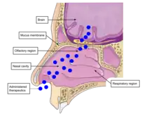 - ↑ Crowe, Tyler P.; Hsu, Walter H. (March 2022). "Evaluation of Recent Intranasal Drug Delivery Systems to the Central Nervous System". Pharmaceutics. 14 (3): 629. doi:10.3390/pharmaceutics14030629. ISSN 1999-4923. PMC 8950509. PMID 35336004.