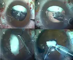 - ↑ de Silva, SR; Riaz, Y; Evans, JR (2014-01-29). "Phacoemulsification with posterior chamber intraocular lens versus extracapsular cataract extraction (ECCE) with posterior chamber intraocular lens for age-related cataract" (PDF). Cochrane Database Syst Rev. 2014 (1): CD008812. doi:10.1002/14651858.CD008812.pub2. PMC 11056193. PMID 24474622.