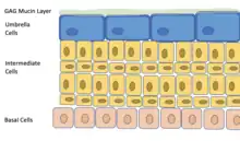 While intravesical delivery shows distinct advantages over systemic drug delivery it has several problems to overcome. When giving a drug intravesically it is diluted by urine and washed out when urine is voided.[1][2][3] Additionally, the low permeability of the urothelium which lines the bladder creates a hurdle that must be overcome if the bladder wall needs to be treated.[3] These issues create the need for more frequent dosing, which causes urinary catheter site irritation and compliance issues with treatments.[2] Intravesical drug dilution occurs as urine accumulates in the bladder, lowering the concentration of drug in the bladder as overall volume increases. The voiding of drug with urine when using traditional drug formulations in the bladder has become a hurdle to overcome as well, since residence time of the drug inside the bladder is directly tied to the treatment’s efficacy.[1] Creating formulations which adhere to the bladder wall has been targeted as one way to improve intravesical dug efficacy,.[1][2][3][4][5] The low adherence of drugs to the bladder wall and low permeability into the bladder wall contributes to low drug retention in the bladder.[1] When modifying drug formulations for intravesical delivery gels or viscosity increasing formulations are sometimes used to increase retention, though this can cause issues with urethra obstruction, an additional hurdle in intravesical drug delivery.[2] Permeability issues with the bladder wall can be attributed to the urothelium, the lining of the bladder wall made up of umbrella cells, intermediate cells, and basal cells.,.[1][2][3][4][5] The impermeability can be attributed to the umbrella cells which form tight junctions with each other to make up the innermost layer of the urothelium and have the ability to change shape to adapt to the bladder’s varying size.[1][2] The umbrella cells are covered in a dense layer of plaques which further prevents the absorption of particles through the urothelium and a layer of mucin composed of glycosaminoglycans (GAGs) which prevents both hydrophobic and negatively charged molecules from adhering to the bladder wall.[1][4] Overcoming the impermeability of the mucin layer and the urothelium is a large focus of many intravesical drug formulations, and is key to an efficacious intravesical treatment[1][2][3][4][5]