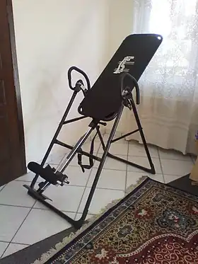 ![]() Foldable inversion table, extended and set up for use. | |