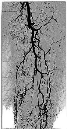 Kinetic imaging is an imaging technology developed by Szabolcs Osváth and Krisztián Szigeti in the Department of Biophysics and Radiation Biology at Semmelweis University (Budapest, Hungary). The technology allows the visualization of motion based on an altered data acquisition and image processing algorithm combined with imaging techniques that use penetrating radiation (e.g., X-rays). Kinetic imaging has the potential for use in a wide variety of areas including medicine, engineering, and surveillance. For example, physiological movements, such as the circulation of blood or motion of organs(e.g., palpitations, arrhythmia) can be visualized using kinetic imaging. Because of the reduced noise and the motion-based image contrast, kinetic imaging can be used to reduce X-ray dose and/or amount of required contrast agent in medical imaging (e.g., X-ray angiography).[1][2] In fact, clinical trials are underway in the fields of vascular surgery and interventional radiology.[1][2][3][4] Non-medical applications include non-destructive testing of products and port security scanning for stowaway pests.[5]