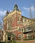 The first premises were the Leeds Public Dispensary on North Street in the town but in 1834 the school was moved to new premises at 1 East Parade. In the 1940s, the "Leeds Public Dispensary and Hospital" is recorded as sponsoring pharmaceutical research undertaken by the University of Leeds.[1] The Medical School's current premises, the Worsley Building, was designed by the Building Design Partnership[2] and officially opened by the Duke of Kent in March 1979.[3]