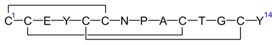 H–Cys1–Cys2–Glu3–Tyr4–Cys5–Cys6–Asn7–Pro8–Ala9–Cys10–Thr11–Gly12–Cys13–Tyr14–OH