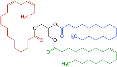 Triglycerides are transported through the blood to appropriate tissues (adipose, muscle, etc.) by lipoproteins such as Very-Low-Density-Lipoproteins (VLDL). Triglycerides present on the VLDL undergo lipolysis by the cellular lipases of target tissues, which yields glycerol and free fatty acids. Free fatty acids released into the blood are then available for cellular uptake.[13] Free fatty acids not immediately taken up by cells may bind to albumin for transport to surrounding tissues that require energy. Serum albumin is the major carrier of free fatty acids in the blood.[14]