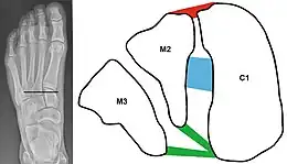 - ↑ DiDomenico LA, Cross D (2012). "Tarsometatarsal/Lisfranc Joint" (PDF). Clinics in Podiatric Medicine and Surgery. 29 (2): 221–42. doi:10.1016/j.cpm.2012.01.003. PMID 22424486. Archived from the original (PDF) on 2016-03-04. Retrieved 2012-06-05.