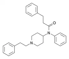 - ↑ Vardanyan RS, Hruby VJ (March 2014). "Fentanyl-related compounds and derivatives: current status and future prospects for pharmaceutical applications". Future Medicinal Chemistry. 6 (4): 385–412. doi:10.4155/fmc.13.215. PMC 4137794. PMID 24635521.