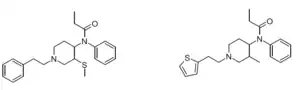- ↑ Kudzma LV, Severnak SA, Benvenga MJ, Ezell EF, Ossipov MH, Knight VV, et al. (December 1989). "4-Phenyl- and 4-heteroaryl-4-anilidopiperidines. A novel class of analgesic and anesthetic agents". Journal of Medicinal Chemistry. 32 (12): 2534–2542. doi:10.1021/jm00132a007. PMID 2585442.