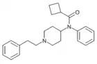 - ↑ Åstrand A, Vikingsson S, Jakobsen I, Björn N, Kronstrand R, Gréen H (August 2020). "Activation of the μ-opioid receptor by alicyclic fentanyls: Changes from high potency full agonists to low potency partial agonists with increasing alicyclic substructure". Drug Testing and Analysis. 13 (1): 169–174. doi:10.1002/dta.2906. PMC 7891621. PMID 32749741.