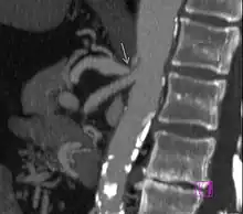 - ↑ Sproat IA, Pozniak MA, Kennell TW (November 1993). "US case of the day. Median arcuate ligament syndrome (celiac artery compression syndrome)". Radiographics. 13 (6): 1400–2. doi:10.1148/radiographics.13.6.8290734. PMID 8290734.