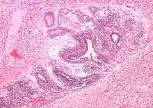 | Micrograph of the primitive neuroepithelium of an immature teratoma of the mediastinum. H&E stain. | |