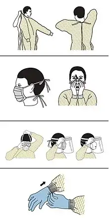 - ↑ "Sequence for Putting On Personal Protective Equipment (PPE)" (PDF). CDC. Archived (PDF) from the original on 5 March 2020. Retrieved 8 March 2020.
