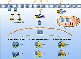 - 1 2 Stahn C, Buttgereit F (October 2008). "Genomic and nongenomic effects of glucocorticoids". Nature Clinical Practice. Rheumatology. 4 (10): 525–33. doi:10.1038/ncprheum0898. PMID 18762788. S2CID 22686260.