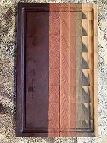 Because of its properties that prevent water absorption, combined with its lack of flavor and odor, food grade mineral oil is a popular preservative for wooden cutting boards, countertops, salad bowls, and utensils. Periodically rubbing a small amount of mineral oil into a wooden kitchen item impedes absorption of food liquids, and thereby food odors, easing the process of hygienically cleaning wooden utensils and equipment. The use of mineral oil to impede water absorption can also prevent cracks and splits from forming in wooden utensils due to wetting and drying cycles. However, some of the mineral oil used on these items, if in contact with food, will be picked up by it and therefore ingested.