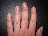 - ↑ Singal, Archana; Arora, Rahul (2015). "Nail as a window of systemic diseases". Indian Dermatology Online Journal. 6 (2): 67–74. doi:10.4103/2229-5178.153002. PMC 4375768. PMID 25821724.