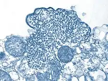 - ↑ Aljofan M, Saubern S, Meyer AG, Marsh G, Meers J, Mungall BA (June 2009). "Characteristics of Nipah virus and Hendra virus replication in different cell lines and their suitability for antiviral screening". Virus Research. 142 (1–2): 92–9. doi:10.1016/j.virusres.2009.01.014. PMC 2744099. PMID 19428741.