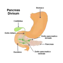 - ↑ Wood, Cecil G.; Lopes Vendrami, Camila; Craig, Elizabeth; Mittal, Pardeep K.; Miller, Frank H. (2020-05-01). "Pancreatitis in the developmentally anomalous pancreas". Abdominal Radiology. 45 (5): 1316–1323. doi:10.1007/s00261-019-02197-8. ISSN 2366-0058. PMID 31468154. S2CID 201655246.