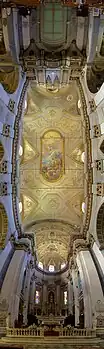 The device of the panorama existed in painting, particularly in murals as early as A.D. 20 in those found in Pompeii,[1][2][3] as a means of generating an immersive 'panoptic' experience of a vista, long before the advent of photography. In the century prior to the advent of photography, and from 1787, with the work of Robert Barker,[4] it reached a pinnacle of development in which whole buildings were constructed to house 360° panoramas,[5] and even incorporated lighting effects and moving elements.[6] Indeed, the careers of one of the inventors of photography, Daguerre, began in the production of popular panoramas and dioramas.[7]