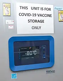 The vaccine is the first COVID‑19 vaccine to be authorized by a stringent regulatory authority for emergency use[62][63] and the first to be approved for regular use.[43] In December 2020, the United Kingdom was the first country to authorize its use on an emergency basis.[61] It is authorized for use at some level in the majority of countries.[64][65][66][67] On 23 August 2021, the Pfizer–BioNTech vaccine became the first COVID-19 vaccine to be approved in the US by the Food and Drug Administration (FDA).[30][33][68] The logistics of distributing and storing the vaccine present significant challenges due to the requirement for its storage at extremely low temperatures.[69]