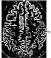 | Double inversion recovery | DIR | Simultaneous suppression of cerebrospinal fluid and white matter by two inversion times.[25] | High signal of multiple sclerosis plaques (pictured).[25] | ![]() | |