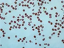 - ↑ Ford, J. (June 2013). "Red blood cell morphology". International Journal of Laboratory Hematology. 35 (3): 351–357. doi:10.1111/ijlh.12082. PMID 23480230.