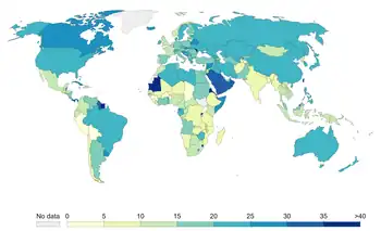 - ↑ "Prevalence of current tobacco use among adults aged ≥ 15 years (percentage)". World Health Organization. Archived from the original on December 11, 2008. Retrieved 2009-01-02.