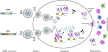 - ↑ Xu S, Yang K, Li R, Zhang L (September 2020). "mRNA Vaccine Era-Mechanisms, Drug Platform and Clinical Prospection". International Journal of Molecular Sciences. 21 (18): 6582. doi:10.3390/ijms21186582. PMC 7554980. PMID 32916818.