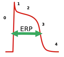 In the classical sense, the cardiac refractory period is separated into an absolute refractory period and a relative refractory period. During the absolute refractory period, a new action potential cannot be elicited. During the relative refractory period, a new action potential can be elicited under the correct circumstances.