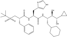 - ↑ Tice, C. M.; Xu, Z.; Yuan, J.; Simpson, R. D.; Cacatian, S. T.; Flaherty, P. T.; Zhao, W.; Guo, J.; Ishchenko, A.; Singh, S. B.; Wu, Z.; Scott, B. B.; Bukhtiyarov, Y.; Berbaum, J.; Mason, J.; Panemangalore, R.; Cappiello, M. G.; Müller, D.; Harrison, R. K.; McGeehan, G. M.; Dillard, L. W.; Baldwin, J. J.; Claremon, D. A. (2009). "Design and optimization of renin inhibitors: Orally bioavailable alkyl amines". Bioorganic & Medicinal Chemistry Letters. 19 (13): 3541–3545. doi:10.1016/j.bmcl.2009.04.140. PMID 19457666.
