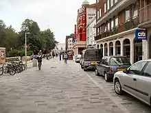 During the 1990s a new approach, known as 'shared space' was developed which removed many of these features in some places has attracted the attention of authorities around the world.[44][45] The approach was developed by Hans Monderman who believed that "if you treat drivers like idiots, they act as idiots"[46] and proposed that trusting drivers to behave was more successful than forcing them to behave.[47] Professor John Adams, an expert on risk compensation, suggested that traditional traffic engineering measures assumed that motorists were "selfish, stupid, obedient automatons who had to be protected from their own stupidity" and non-motorists were treated as "vulnerable, stupid, obedient automatons who had to be protected from cars – and their own stupidity".[48]