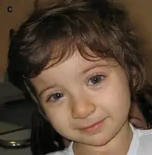 | Child displaying characteristic facial features of Rubinstein–Taybi syndrome | |