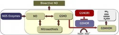 The generation of GSNO can serve as a stable and mobile NO pool which can effectively transduce NO signaling.[6][7] Unlike other low molecular weight messengers that bind to and activate target cellular receptors, NO signaling is mediated by a coordinating complex between NO and transition metals or target cellular proteins, often via S-nitrosylation of cysteine residues.[8][9][10] Studies suggest that NO metabolism has a significant role in human cardiovascular and respiratory diseases as well as in immune tolerance during organ transplantation.[11][12][13][14]