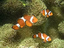 Teleost fishes are the only vertebrate lineage where sequential hermaphroditism occurs. In clownfish, smaller fish are male, and the dominant and largest fish in a group becomes female; when a dominant female is absent, then her partner changes sex from male to female. In many wrasses the opposite is true: the fish are initially female and become male when they reach a certain size.[67]