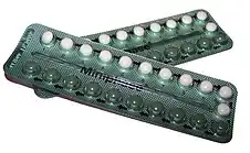 There are many types of contraceptives. One type of contraceptive includes barrier methods.[38] One barrier method includes condoms for males and females.[38] Both types stop sperm from entering the woman's uterus, thereby preventing pregnancy from occurring.[38] Another type of contraception is the birth control pill, which stops ovulation from occurring by combining the chemicals progestin and estrogen.[38] Many women use this method of contraception, however, they discontinue using it equally as much as they use it.[39] One reason for this is because of the side effects that may occur from using the pill, and because some health care providers do not take women's concerns about negative side effects seriously.[39] The use of the birth control pill is common in western countries, and two forms of combined oral contraceptives are on the World Health Organization's List of Essential Medicines, the most important medications needed in a basic health system.[40]