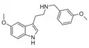 ![]() | 5-MeO-T-NBOMe | artificial | 5-OCH3 | H | CH2C6H4(o-OCH3) | 5-methoxy-N-(ortho-methoxybenzyl)tryptamine | 1335331-37-7 |
