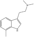 - ↑ Glennon RA, Schubert E, Jacyno JM, Rosecrans JA (November 1980). "Studies on several 7-substituted N,N-dimethyltryptamines". Journal of Medicinal Chemistry. 23 (11): 1222–6. doi:10.1021/jm00185a014. PMID 6779006.
