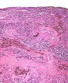 | Micrograph of diffuse TGCT, also known as pigmented villonodular synovitis. H&E stain. | |