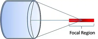 A spherically focused transducer is most sensitive to thermoacoustic waves originating along a line passing through its focal point. Time-of-flight information is used to estimate the thermoacoustic signal strength along this line. A 2D image can be assembled a line-at-a-time by translating the focused transducer laterally along a linear path. A 3D image can be built up by scanning the transducer along a rectilinear path within a 2D plane.[19] The ability to distinguish thermoacoustic signals along the line of focus (axial resolution) is superior to distinguishing thermoacoustic signals transverse to the line of focus (lateral resolution). For this reason the lateral spatial resolution is three- to four-times worse than the axial spatial resolution using this approach.