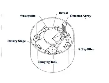 - ↑ Kruger RA, Miller KD, Reynolds HE, Kiser Jr WL, Reinecke DR, Kruger GA. Contrast enhancement of breast cancer in vivo using thermoacoustic CT at 434 MHz. Radiology 2000;216: 279-283.