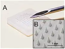 - 1 2 Li, Junwei; Zeng, Mingtao; Shan, Hu; Tong, Chunyi (August 23, 2017). "Microneedle Patches as Drug and Vaccine Delivery Platform". Current Medicinal Chemistry. 24 (22): 2413–2422. doi:10.2174/0929867324666170526124053. ISSN 0929-8673. PMID 28552053.