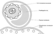 - 1 2 Ralston KS, Kabututu ZP, Melehani JH, Oberholzer M, Hill KL (2009). "The Trypanosoma brucei flagellum: moving parasites in new directions". Annual Review of Microbiology. 63: 335–362. doi:10.1146/annurev.micro.091208.073353. PMC 3821760. PMID 19575562.