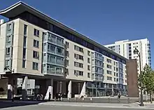 UCSF's Mission Bay Campus, also located in San Francisco, is the largest ongoing biomedical construction project in the world.[46] The 43-acre (17 ha) Mission Bay campus, opened in 2003 with construction still ongoing, contains additional research space and facilities to foster biotechnology and life sciences companies. It will double the size of UCSF's research enterprise over the next 10 years. The biotechnology company Genentech contributed $50 million toward construction of a building as part of a settlement regarding alleged theft of UCSF technology several decades earlier.[47]