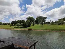The Expo Hill (Malay: Bukit Ekspo) is a recreational place in UPM, located at south of Thirteenth College and northwest of UniPutra Golf Club. With the area approximately 12 hectares, it has divided into five zones. Another 13 hectares is made up of 5 freshwater fish ponds which are rearing 5 different fish species (Lampam, Tilapia, Rohu, Belida and Sepat). The Expo Hill was used as the venue of the Agricultural Expo and Convocation Festival for the first time during the first convocation of UPM in 1977. There is an elevated railway track crossing the Expo Hill, travelled by KLIA Ekspres and KLIA Transit, to which the nearest station is Bandar Tasik Selatan station.