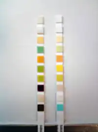 ![]() The Multistix urine test strip showing the manufacturer's coloured scale. | |