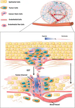 - ↑ Kotiyal, Srishti; Bhattacharya, Susinjan (2015). "Epithelial Mesenchymal Transition and Vascular Mimicry in Breast Cancer Stem Cells". Critical Reviews in Eukaryotic Gene Expression. 25 (3): 269–280. doi:10.1615/CritRevEukaryotGeneExpr.2015014042. ISSN 1045-4403. PMID 26558950.