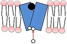 - 1 2 Merickel A, Kaback HR, Edwards RH (1997). "Charged residues in transmembrane domains II and XI of a vesicular monoamine transporter form a charge pair that promotes high affinity substrate recognition". J. Biol. Chem. 272 (9): 5403–5408. doi:10.1074/jbc.272.9.5403. PMID 9038139.