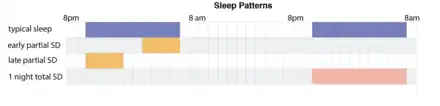| Partial sleep deprivation (~ 4–6 hours of sleep in either the first or last half of the night) | ~ 53.1%[3] | ~ 1 Day [10] |